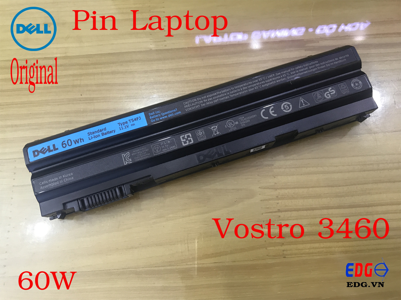 Pin laptop Dell chính hãng Pin Laptop Dell Vostro 3460Bảo hành 06 tháng Thông số : pin Dell 3460Type : T54FJDung lượng : 60WhĐiện áp : 11.1VSố lượng Cell : 6 cell hình ảnh : Pin Laptop Dell Vostro 3460 chính hãng